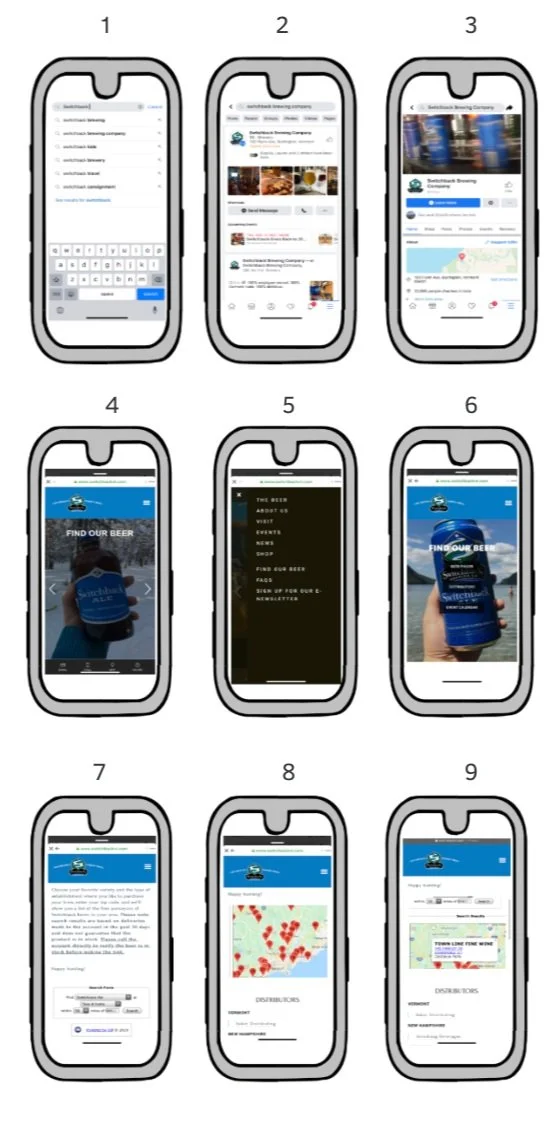 Scene 1: Richard is interested in finding out where Switchback distributes. Richard, being a big Facebook user, decided to pull out his Iphone 8 Plus, search on Facebook, "Switchback Brewing Company."