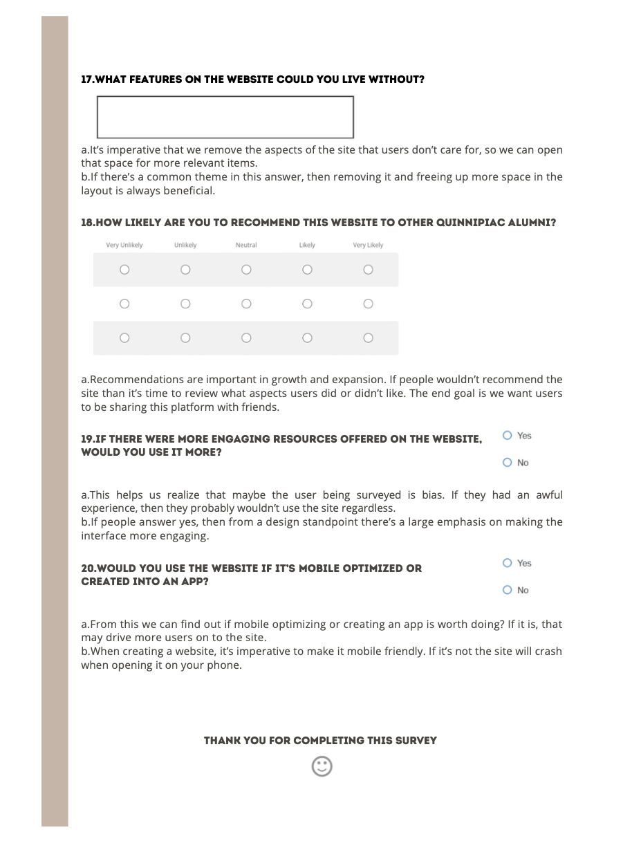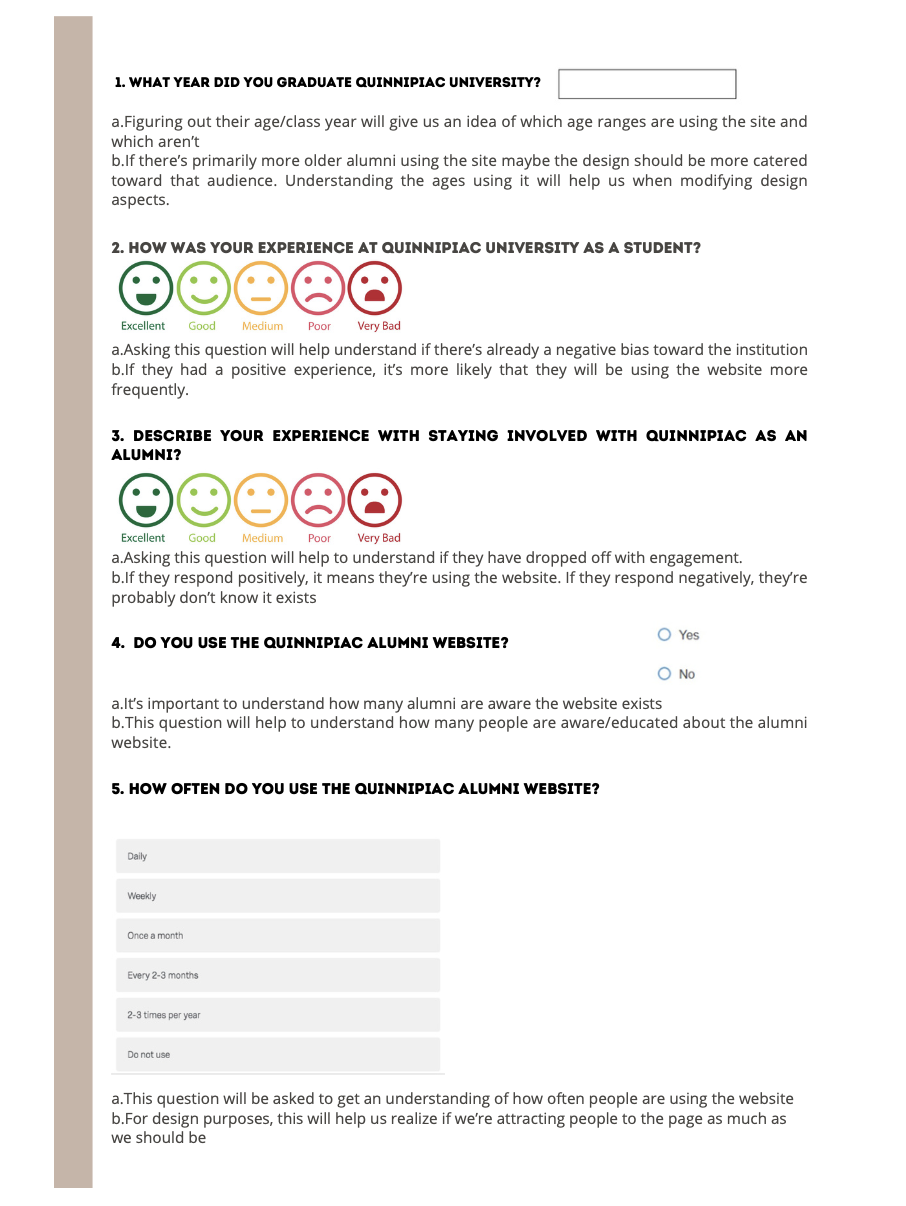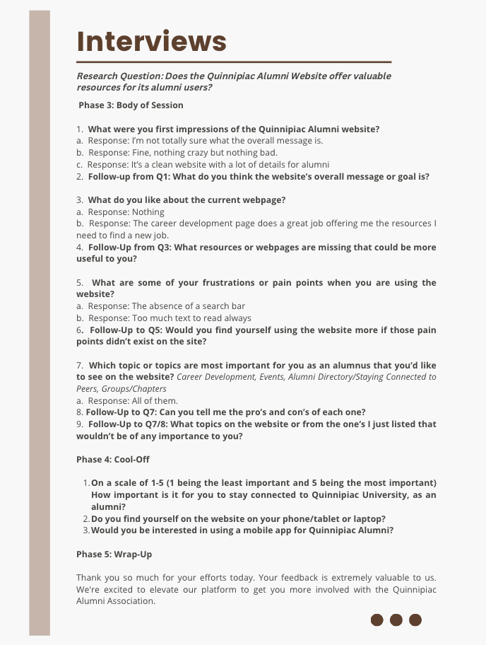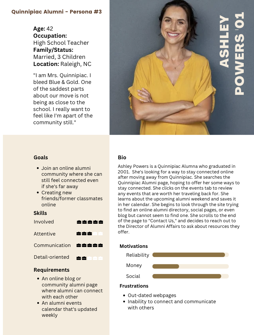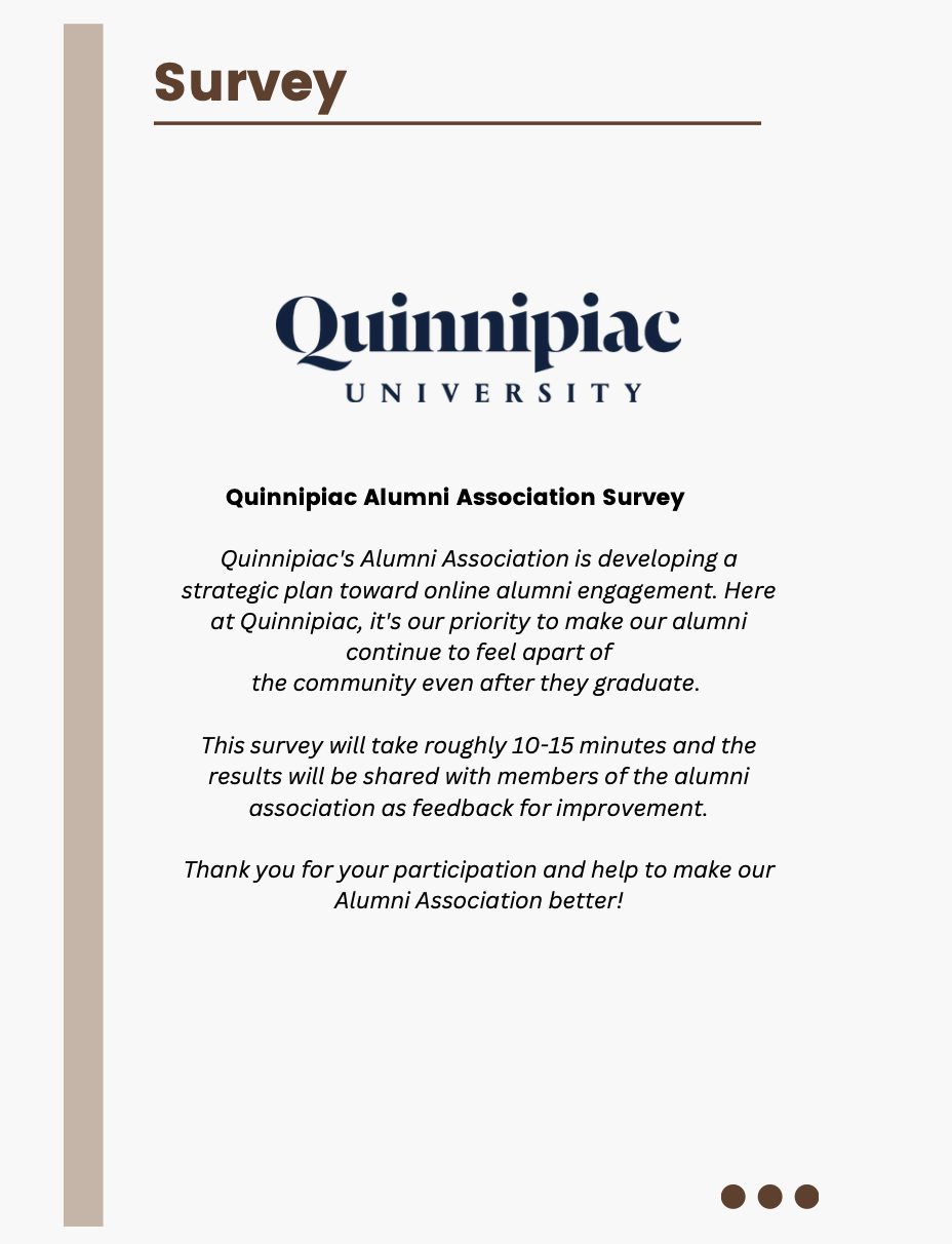 In conclusion, the Quinnipiac Alumni Association overall goal is maintaining the connection between alumni and the university. It's imperative that the Quinnipiac Alumni Website is a representation of that connection and community, both fundamentally and visually.