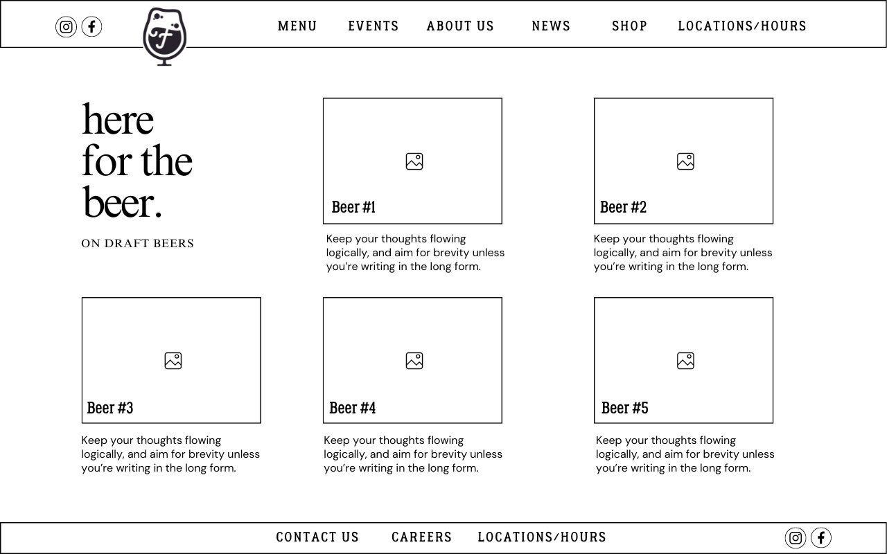 For Foam’s website wireframe, the layout created shows both the main home page and the beer page. Most breweries just have pictures of the beer and don’t tell the story. We emphasize the importance of community for this brand and having a website with more stories and descriptions only adds to that community factor.